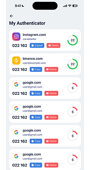 Time-based one-time passwords (TOTP) generated securely on your device.